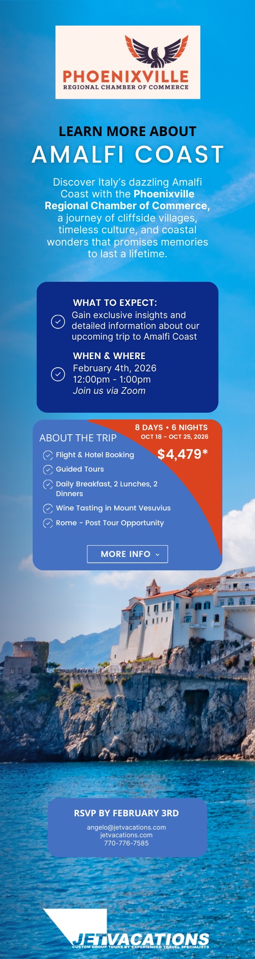 Take advantage of this opportunity to save money, gain new clients, and grow your brand. Members can post discounts for free. Interested in adding a discount? Email Meg at mmccain@phoenixvillechamber.org to get started today!