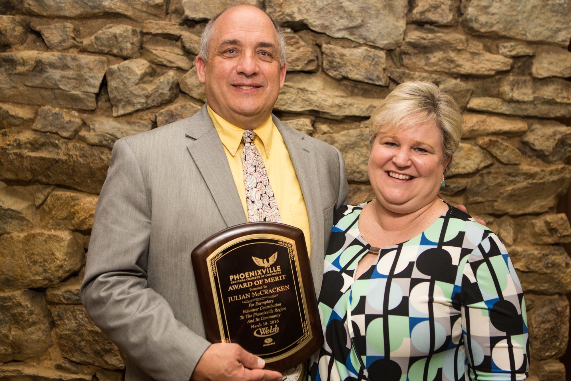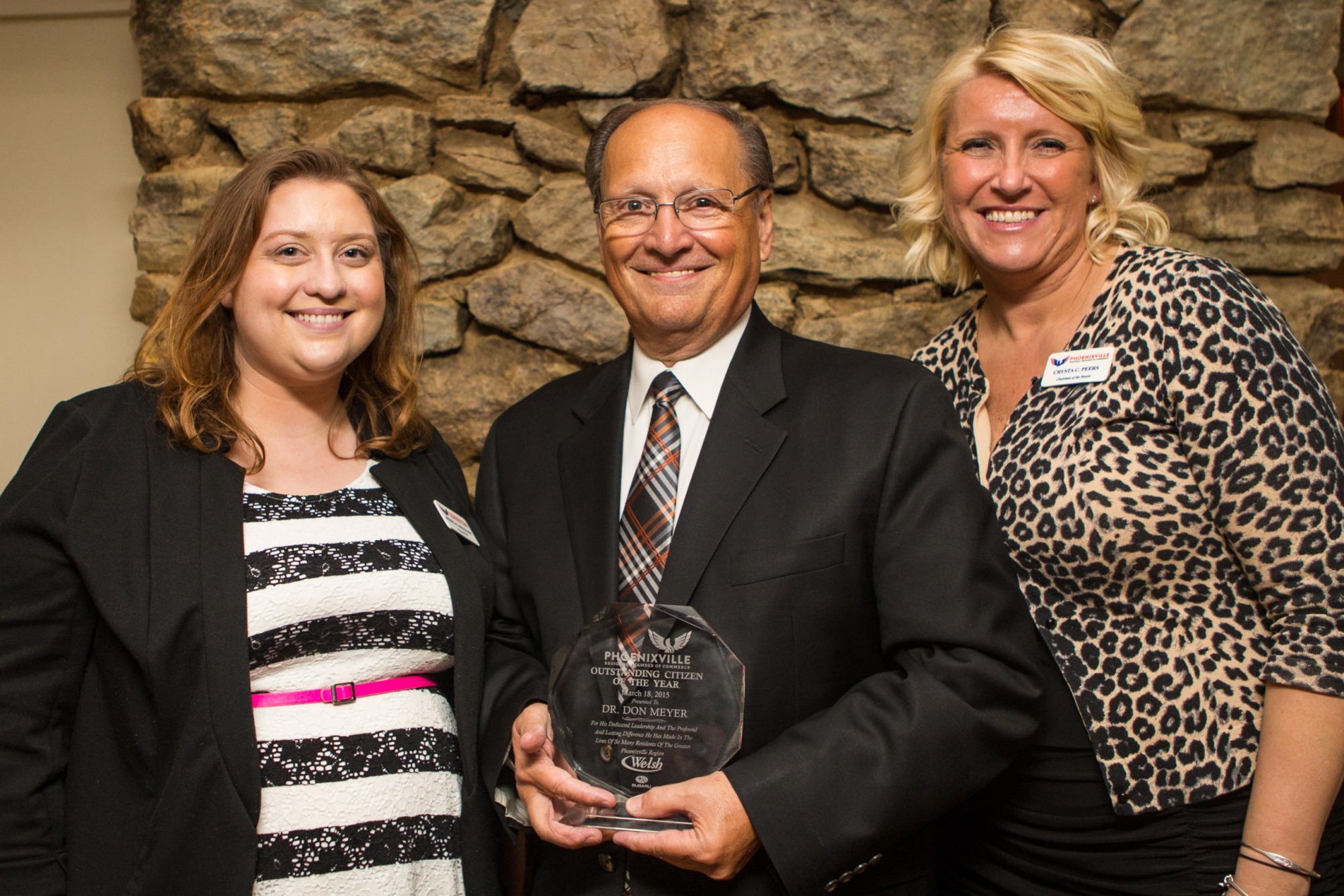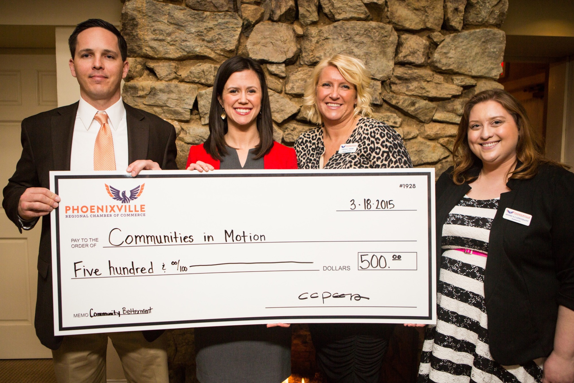 The Phoenixville Chamber of Commerce hosted its Annual Awards Dinner on March 18, 2015 to recognize members of our community who dedicate countless hours to volunteer projects and community improvements. The sold out event, held at Phoenixville Country Club, included a cocktail hour, dinner, a State of the Chamber address, and an awards presentation for the eight recipients. Special thanks to Welsh Subaru of Limerick, the Awards Sponsor for the event, whose sponsorship allowed the Chamber to present a $500.00 check to Communities in Motion to support its work in the community. The Chamber is thankful to those who improve our community, and these awards recipients do just that.