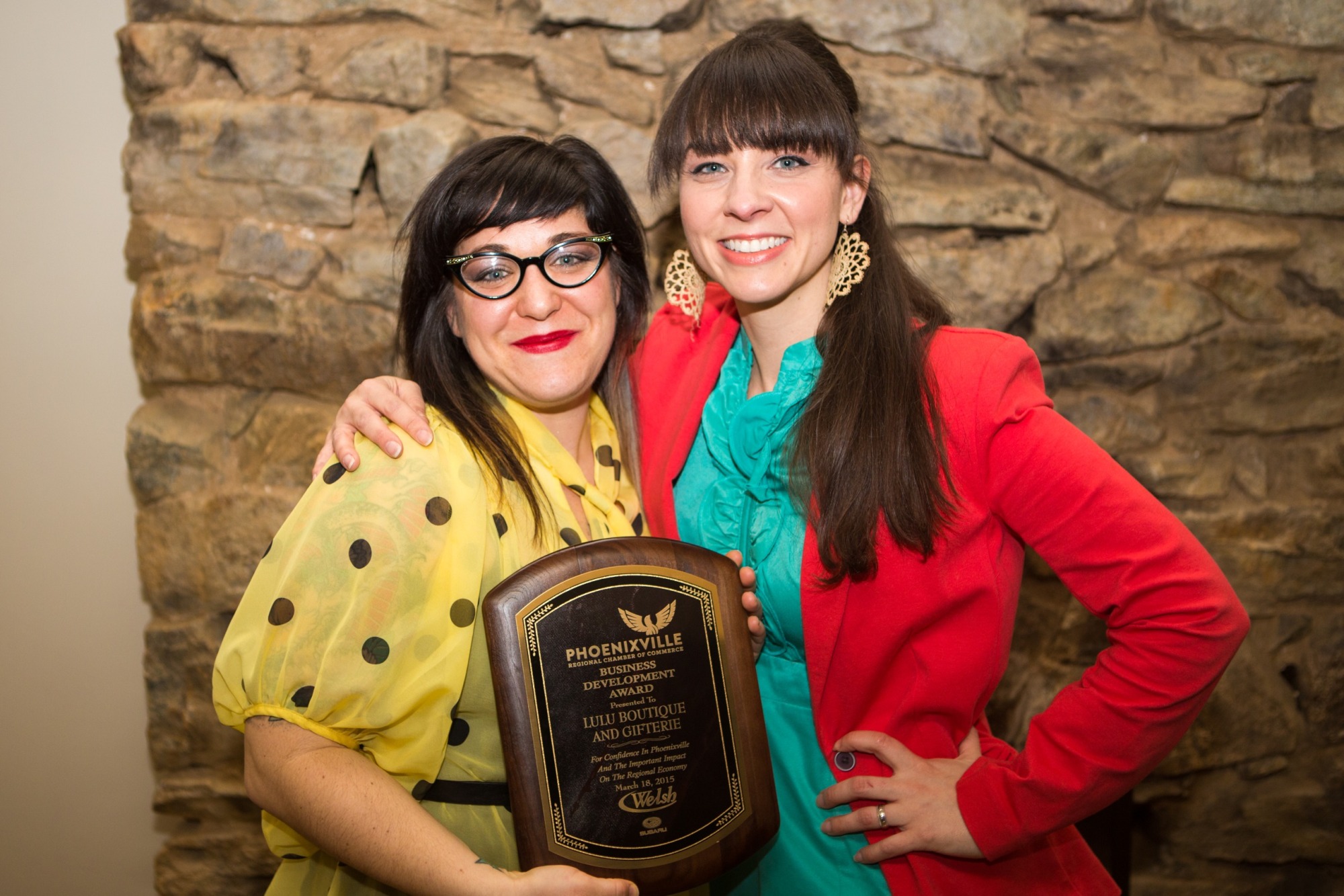 - Joan Moore and Keely Wrigley of LuLu Boutique & Giferie accept their award together.